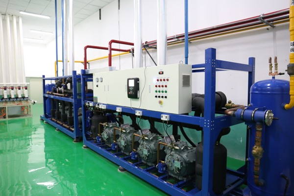 項目中兩間-30℃速凍庫選用一臺美國開利雙極活塞六并聯機組180P,配用一臺萬享蒸發冷;其中四間-18℃冷凍庫選用一臺美國開利雙極活塞四并聯機組120P,配用一臺萬享蒸發冷;15間0℃氣調庫選用兩臺美國開利雙極活塞四并聯機組140P,配用兩臺萬享蒸發冷。本次項目所選用的聚氨酯庫板阻燃等級:B2級。
