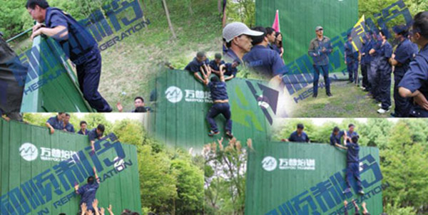 翻越畢業(yè)墻,是我們要共同完成的一項比較動用體力的任務,一個考驗團隊協(xié)作力和互助力的項目。面對4.2米高的求生墻,任憑你的能力再強,你也不可能一個人徒手攀上四米高的墻但是集體的力量卻很大,在教練的一聲命令下,團隊中所有人的共同努力,團結合作,甘當人梯, 如果不是親歷這個難忘的場面,真的是無法想象這個團隊如“井噴”般爆發(fā)出的威力,很快幾個男同事順利翻越,然后大部分同事做保護,少部分同事在上面伸手拉人,極少部分的同事則在最底部充當人梯。大家最終用事實證明我們的力量是無人能敵、不可戰(zhàn)勝的。30人僅僅用10分的時間順利翻越畢業(yè)墻,時間再次證明和順制冷的強大的團隊協(xié)作力。